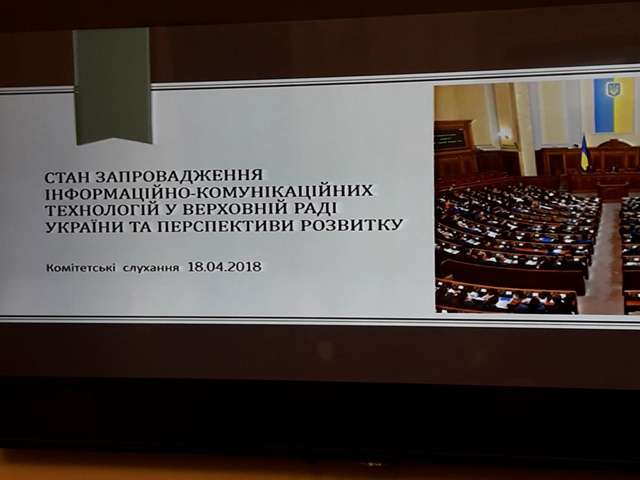 Під час слухань також відзначалося, що рівень забезпечення засобами комп’ютерної техніки народних депутатів та працівників Апарату Верховної Ради становить 100%; всі комп’ютеризовані робочі місця працівників під’єднані до мережі Інтернет. Водночас, 25% комп’ютерної техніки фізично та морально застаріли і потребують термінової заміни.