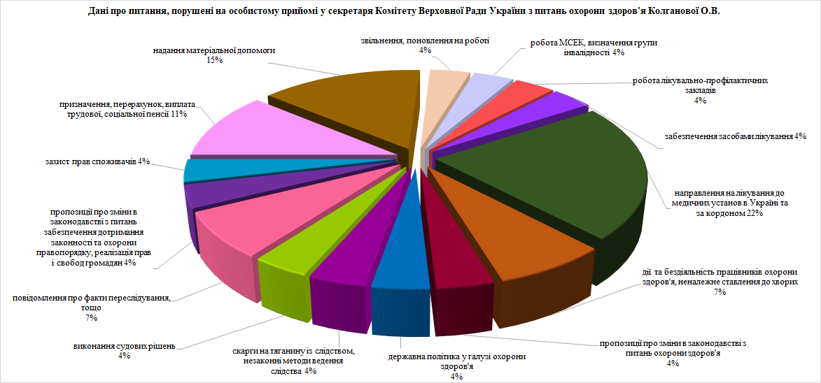 У своїх зверненнях до народного депутата України відвідувачі приймальні Верховної Ради України порушували питання охорони здоров’я, соціальної політики та соціального захисту населення, забезпечення дотримання законності та охорони правопорядку, реалізації прав і свобод громадян, праці і заробітної плати.