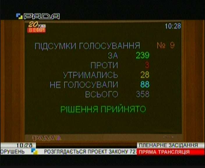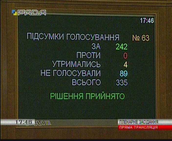 238 голосами проект Постанови прийнято в цілому.