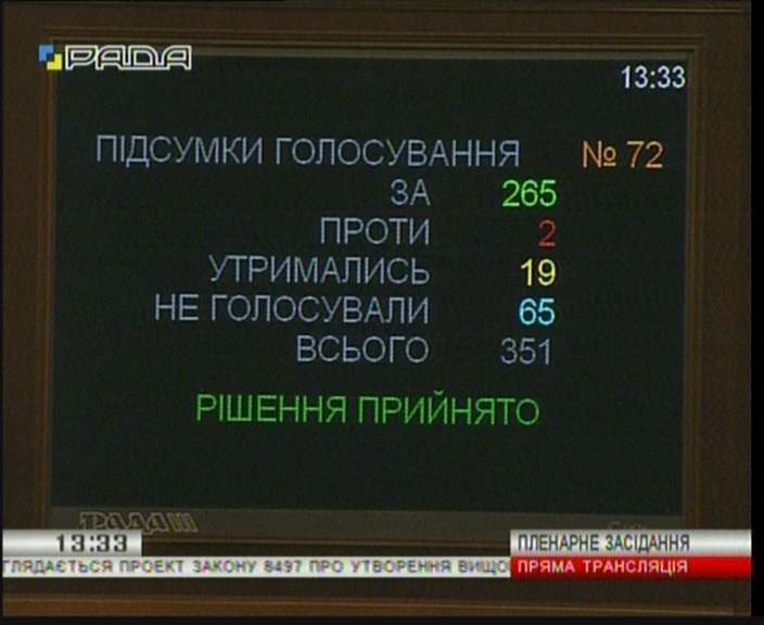 Прийнято Закон "Про утворення Вищого