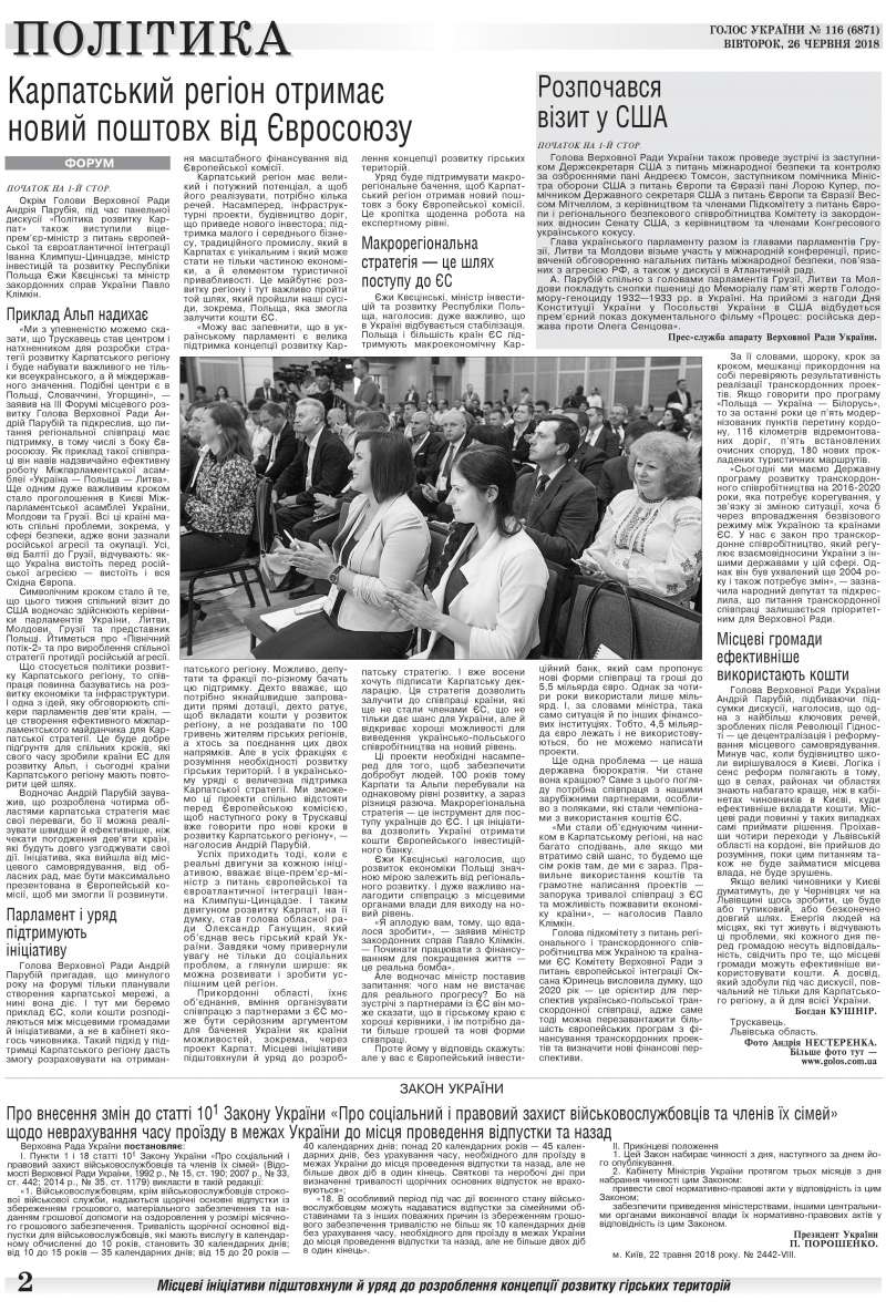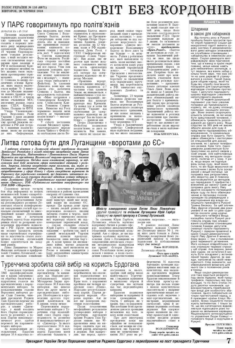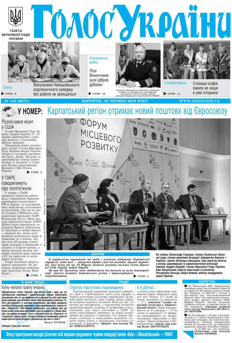 Повний випуск «Голосу України» від 26.06.2018 читайте на сайті http://www.golos.com.ua