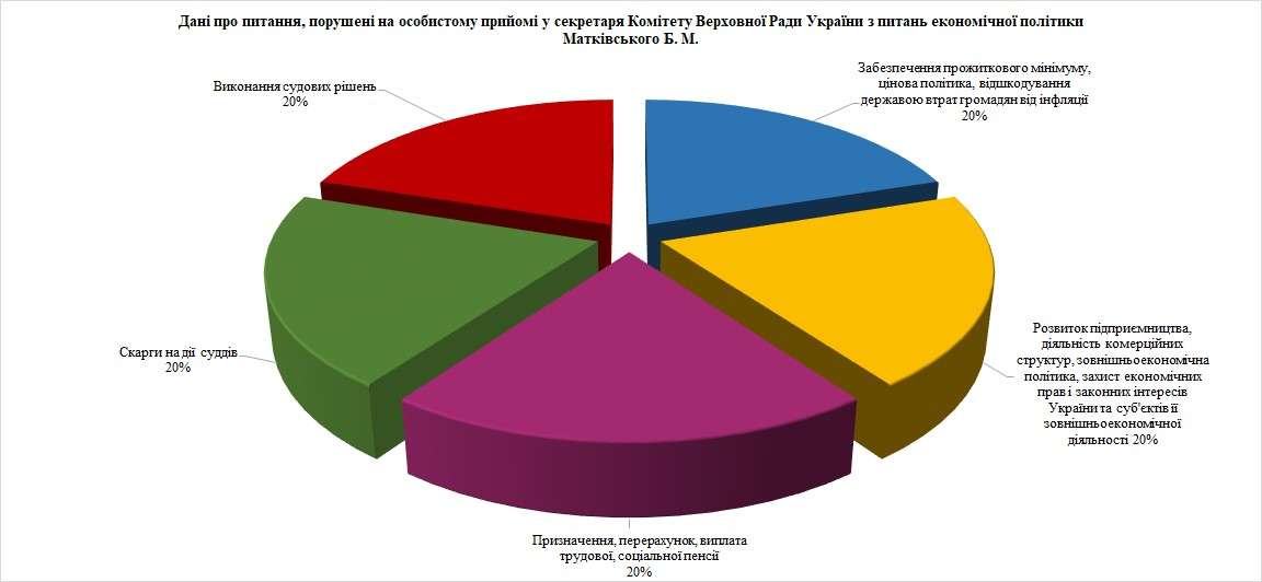 Під час особистого прийому відвідувачі порушували питання економічної, цінової, інвестиційної, зовнішньоекономічної, регіональної політики та будівництва, підприємництва, соціальної політики та соціального захисту населення, забезпечення дотримання законності та охорони правопорядку, реалізації прав і свобод громадян, запобігання дискримінації.