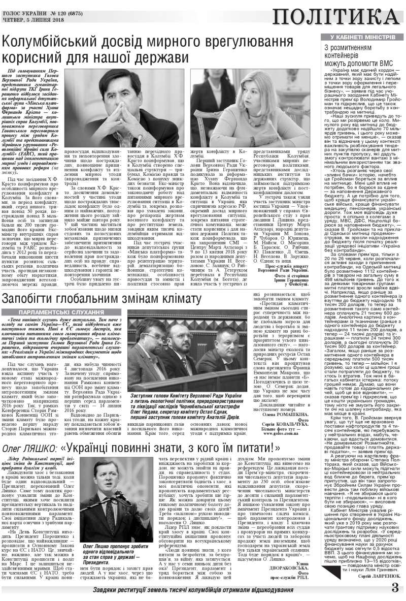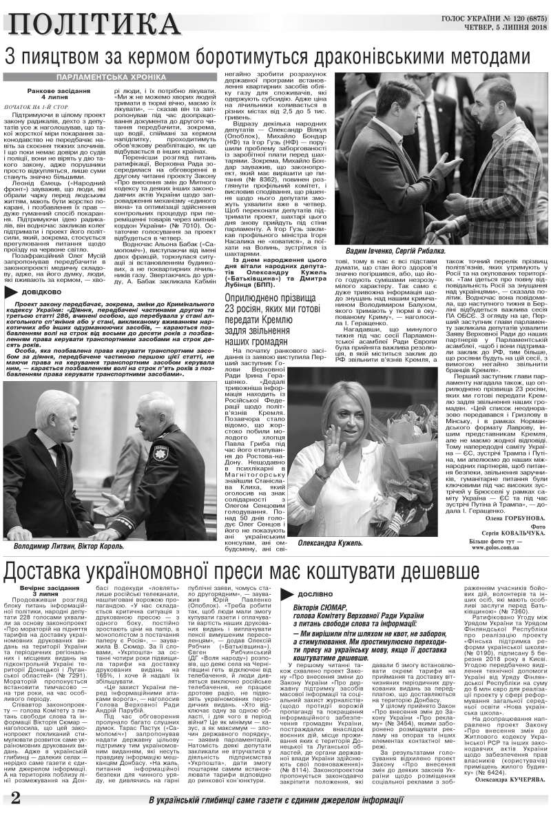 Повний випуск «Голосу України» від 05.07.2018 читайте на сайті http://www.golos.com.ua