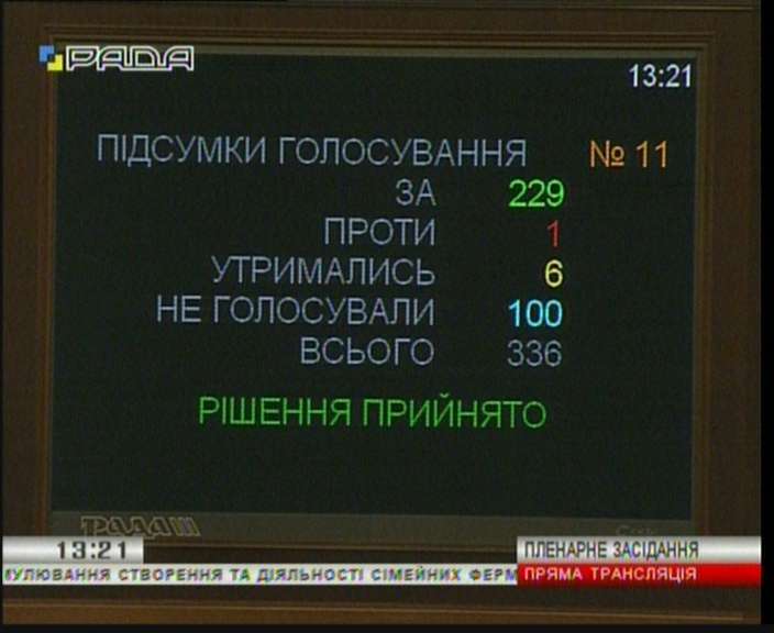 За результатами голосування законопроект 226 голосами прийнято за основу.