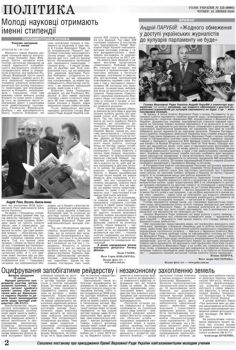 Повний випуск «Голосу України» від 12.07.2018 на сайті http://www.golos.com.ua