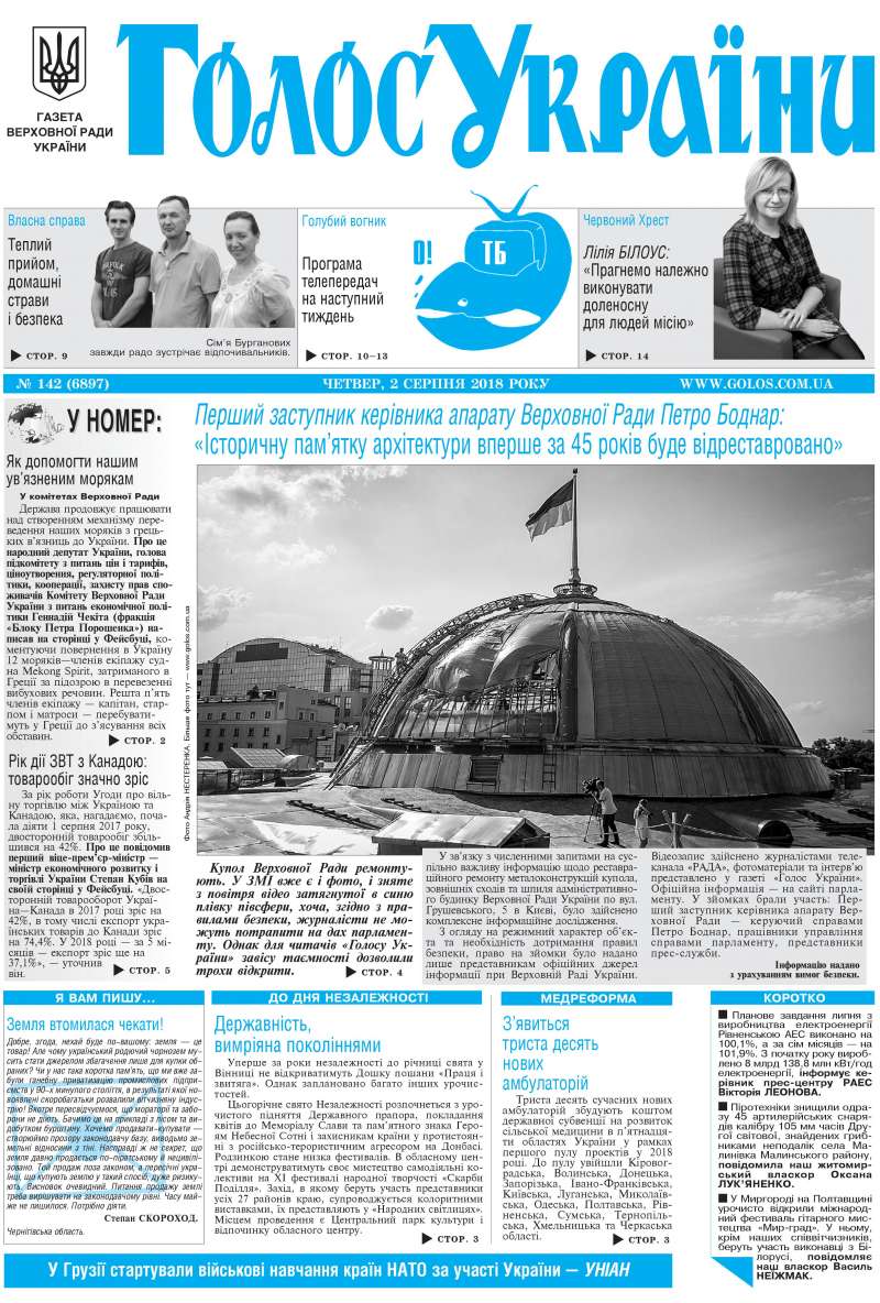 Повний випуск «Голосу України» від 02.08.2018 на сайті http://www.golos.com.ua