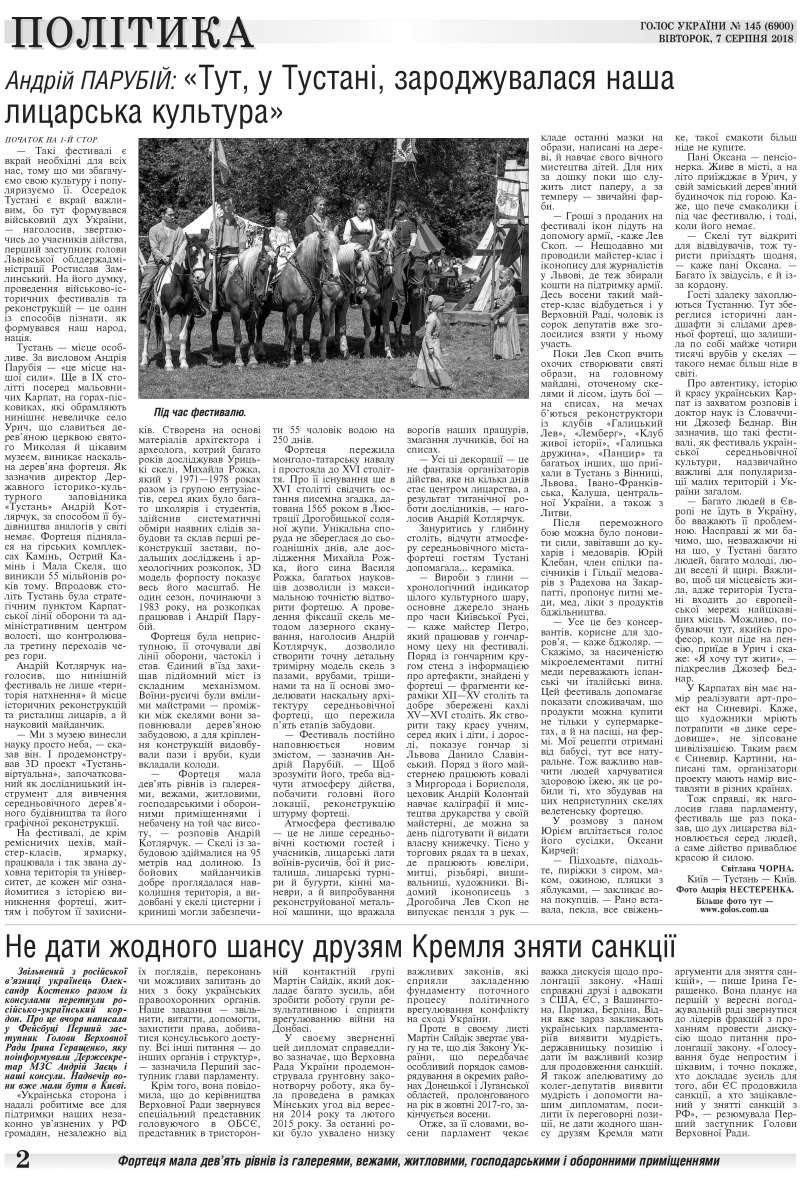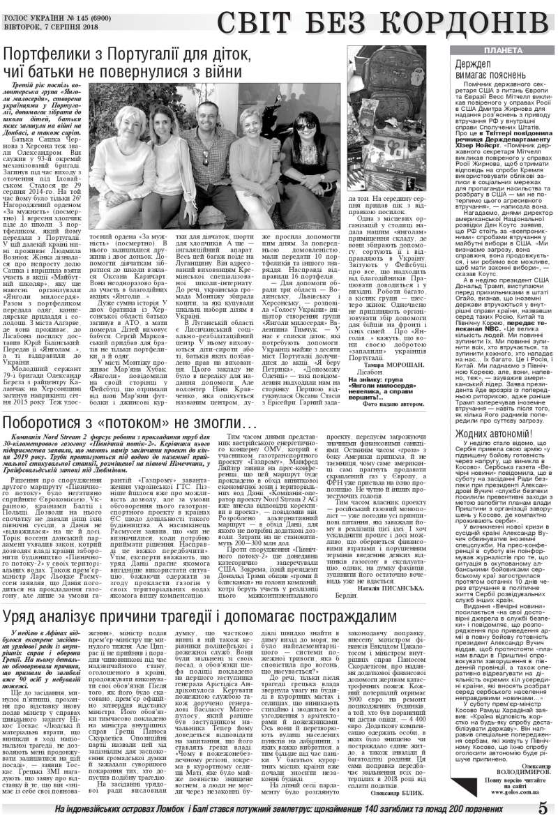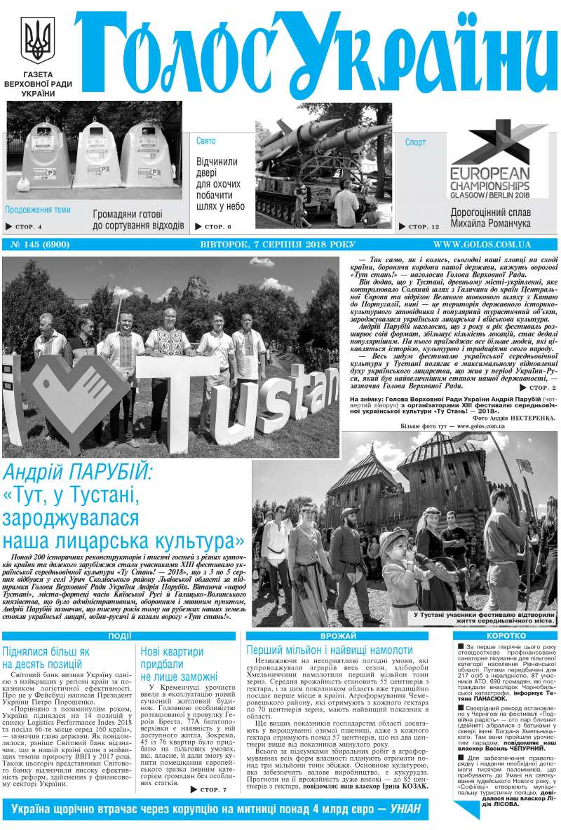 Повний випуск «Голосу України» від 07.08.2018 читайте на сайті http://www.golos.com.ua