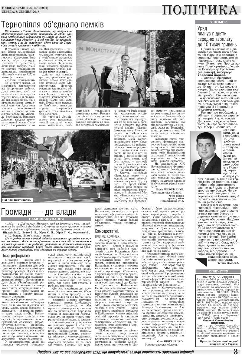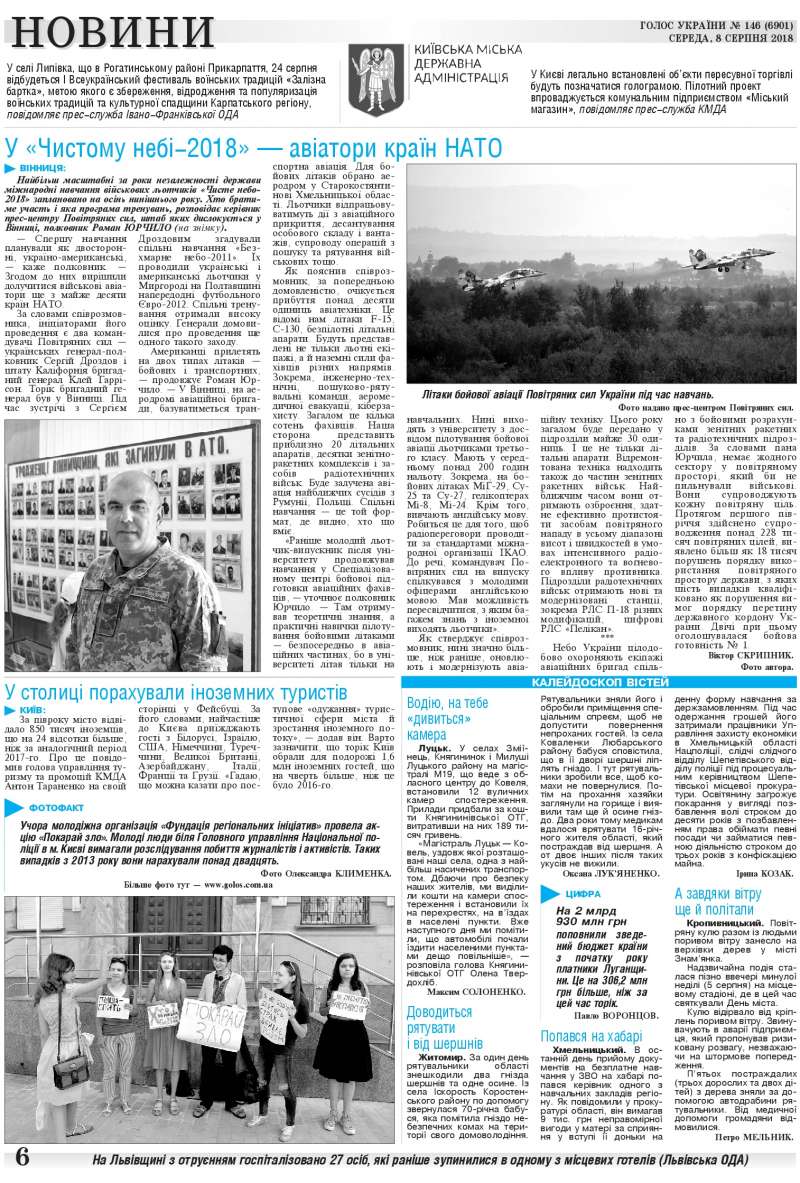 Повний випуск «Голосу України» від 08.08.2018 на сайті http://www.golos.com.ua