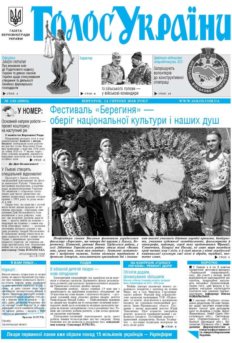 Повний випуск «Голосу України» від 14.08.2018 на сайті http://www.golos.com.ua