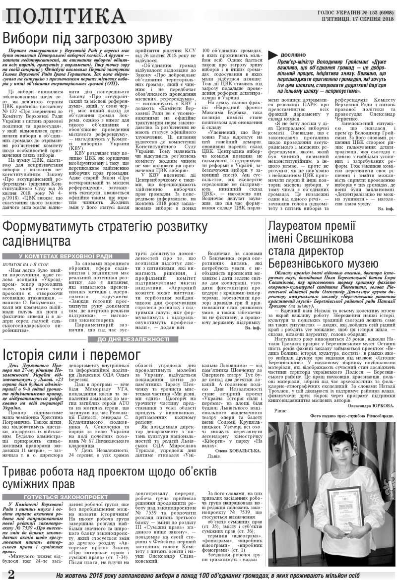 Повний випуск «Голосу України» від 17.08.2018 на сайті http://www.golos.com.ua