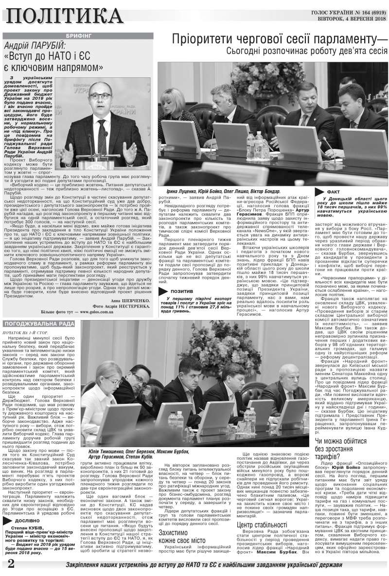Повний випуск «Голосу України» від 04.09.2018 на сайті http://www.golos.com.ua