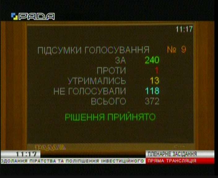 Закон ухвалено 234-ма голосами народних депутатів.