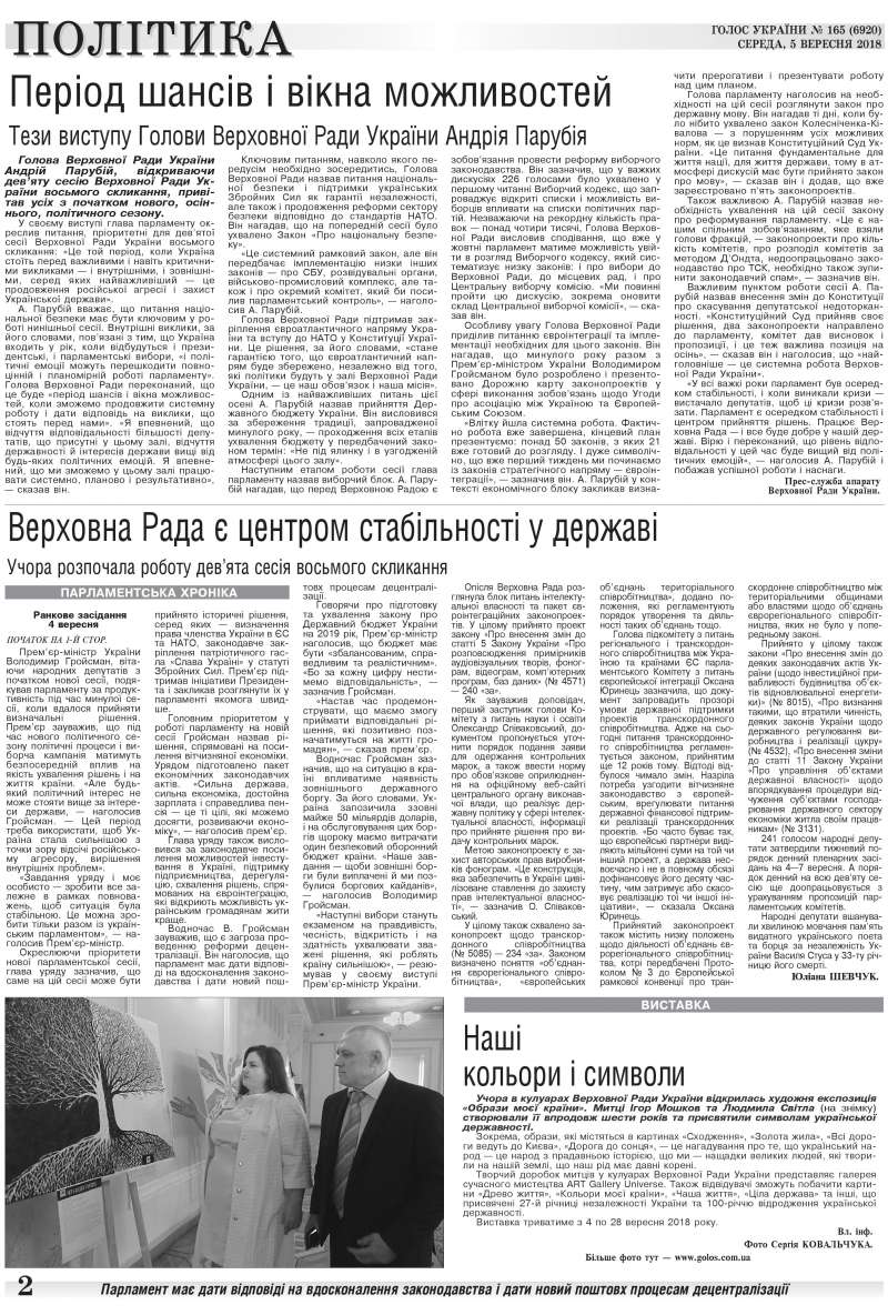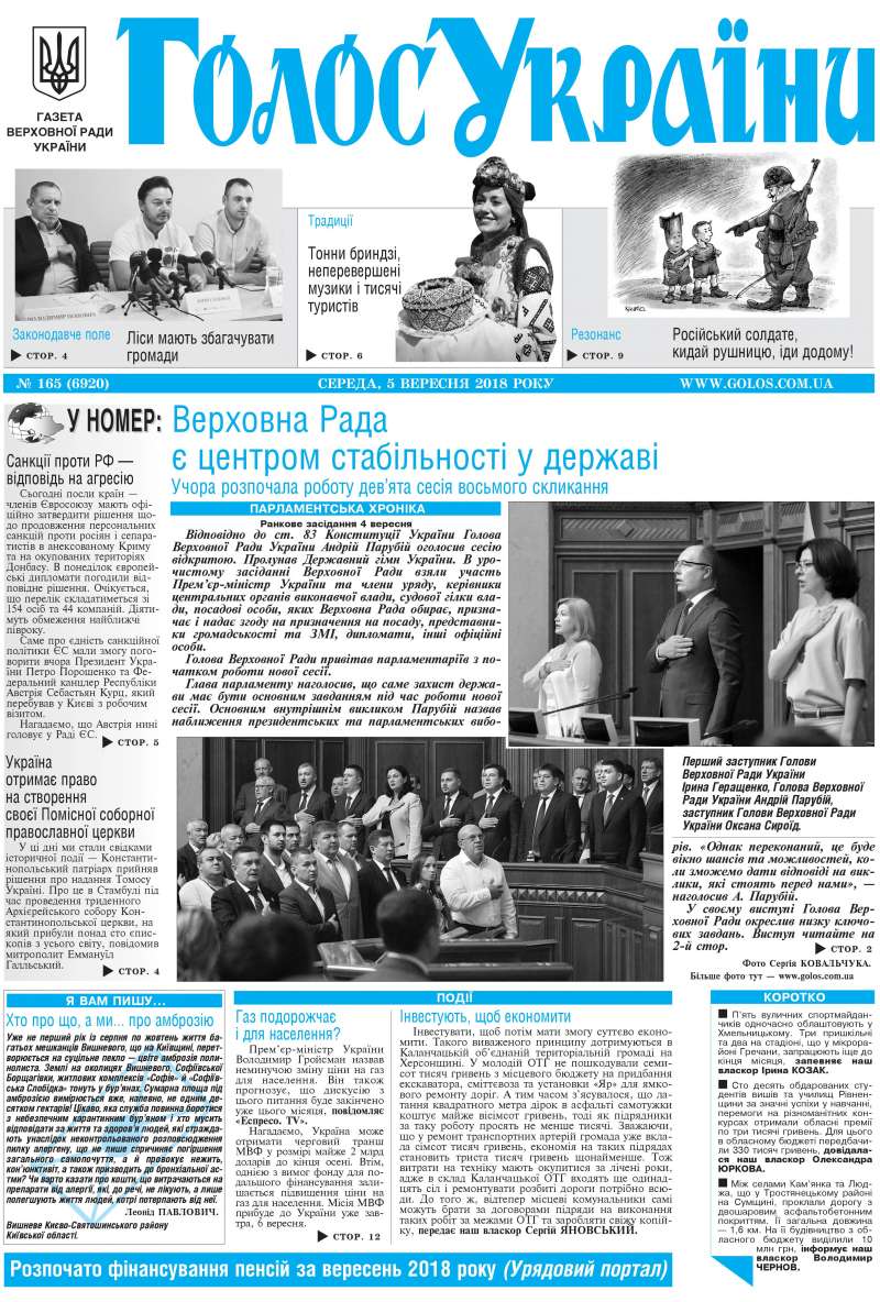 Повний випуск «Голосу України» від 05.09.2018 на сайті http://www.golos.com.ua