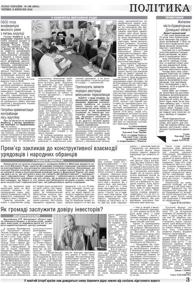 Повний випуск «Голосу України» від 06.09.2018 на сайті http://www.golos.com.ua