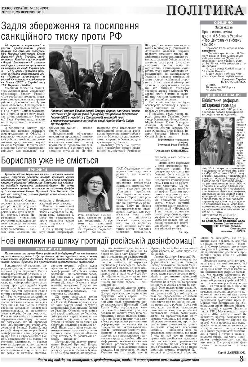 Повний випуск «Голосу України» від 20.09.2018 на сайті http://www.golos.com.ua