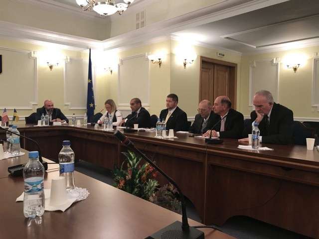 «На зустрічі із Ростіном Бехнем Членом Комісії з торгівлі товарними ф'ючерсами (CFTC, США) та його колегами Кевіном Піколі, заступником директора управління з міжнародних справ та Джорджем Пулен, старшим економістом департаменту нагляду за ринком говорили про торгівлю фінансовими та товарними деривативами, регулювання ринку деривативів, розробку політик, пов’язаних із новими підходами в цифровій економіці.