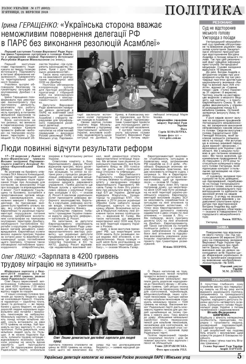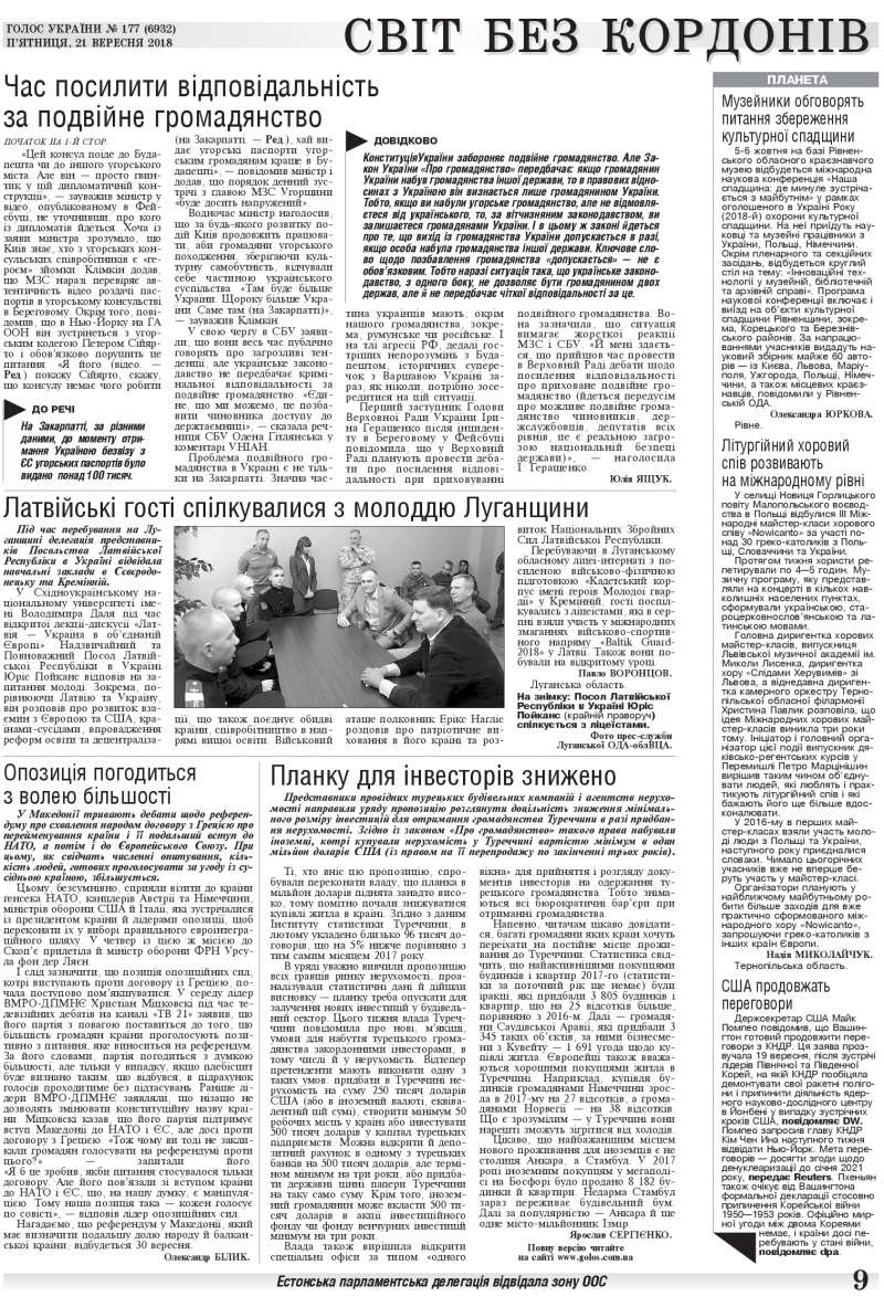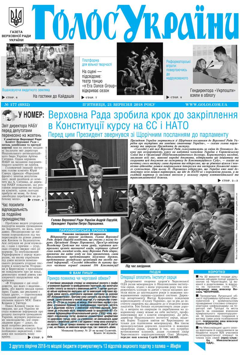 Повний випуск «Голосу України» від 21.09.2018 на сайті http://www.golos.com.ua