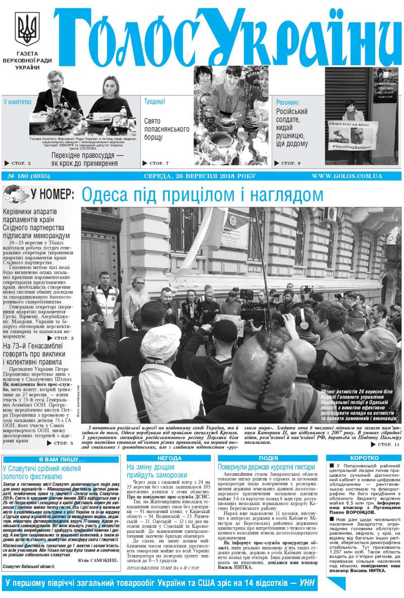 Повний випуск «Голосу України» від 26.09.2018 на сайті http://www.golos.com.ua