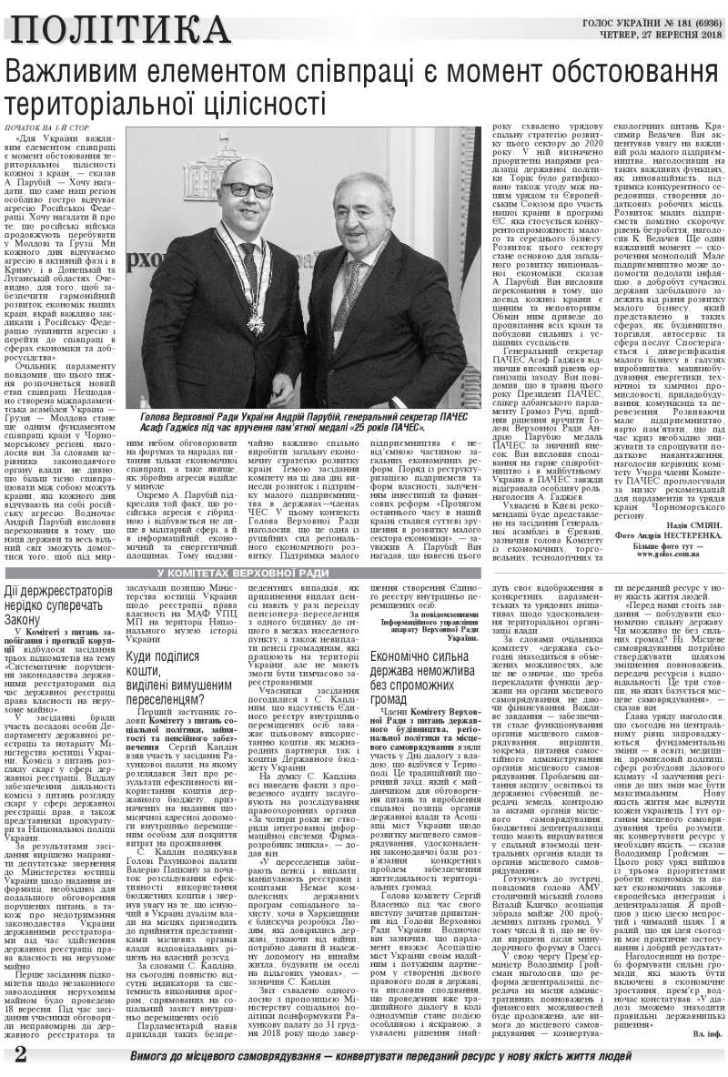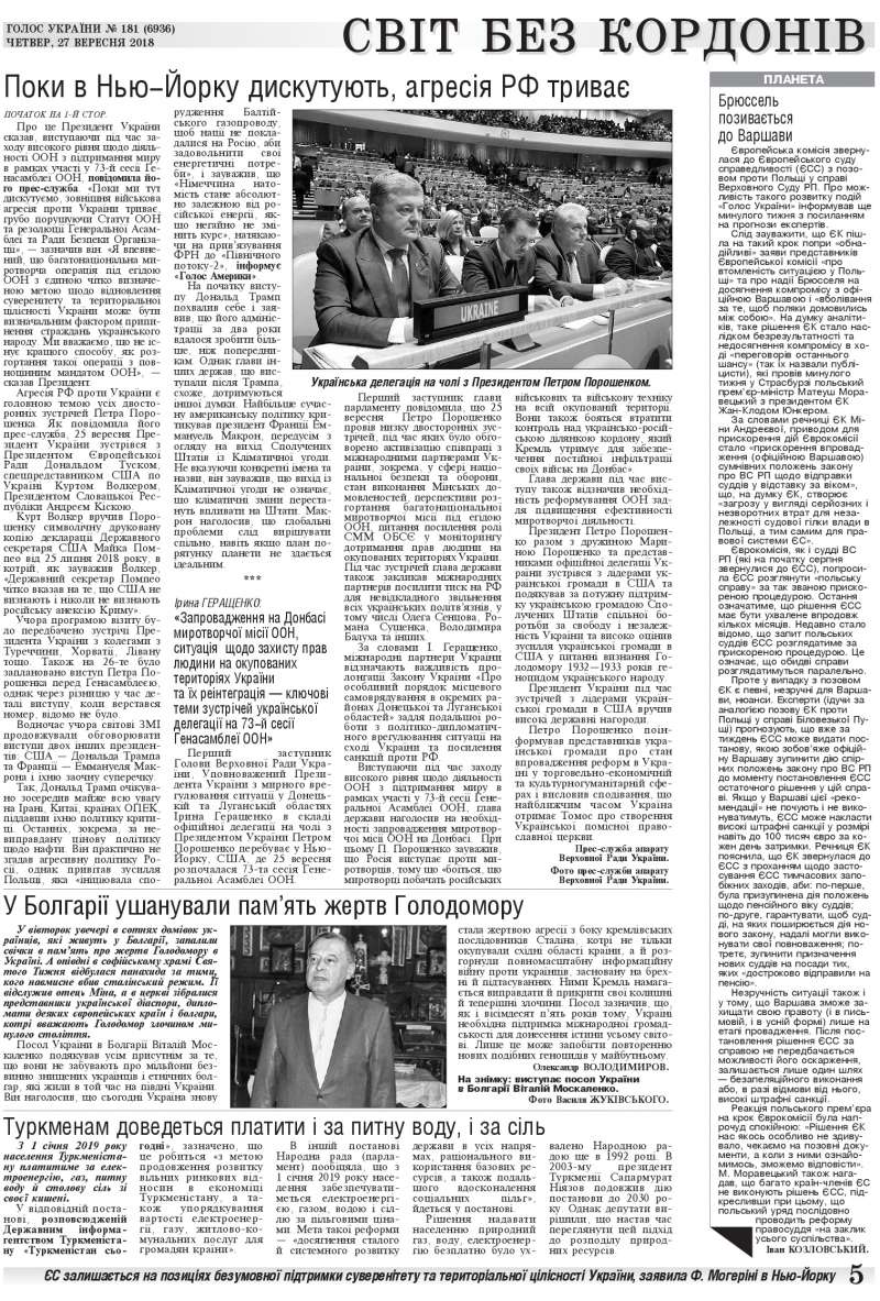 Повний випуск «Голосу України» від 27.09.2018 на сайті http://www.golos.com.ua