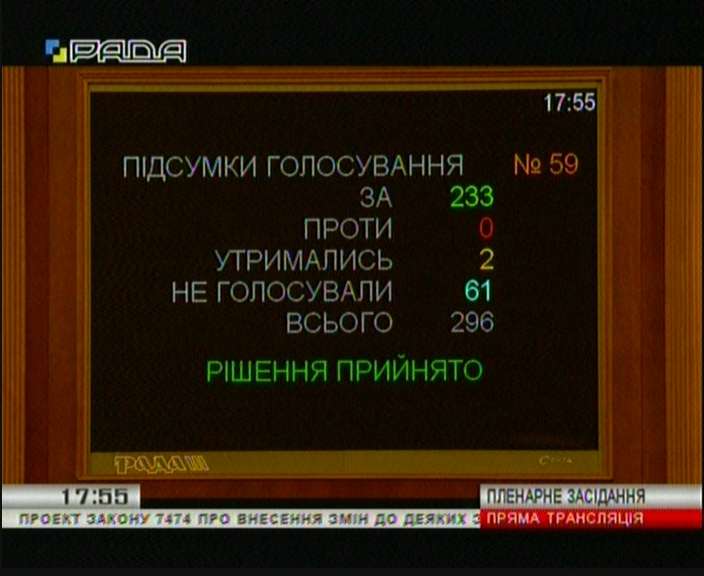 233 голосами "за" законопроект прийнято за основу та в цілому.