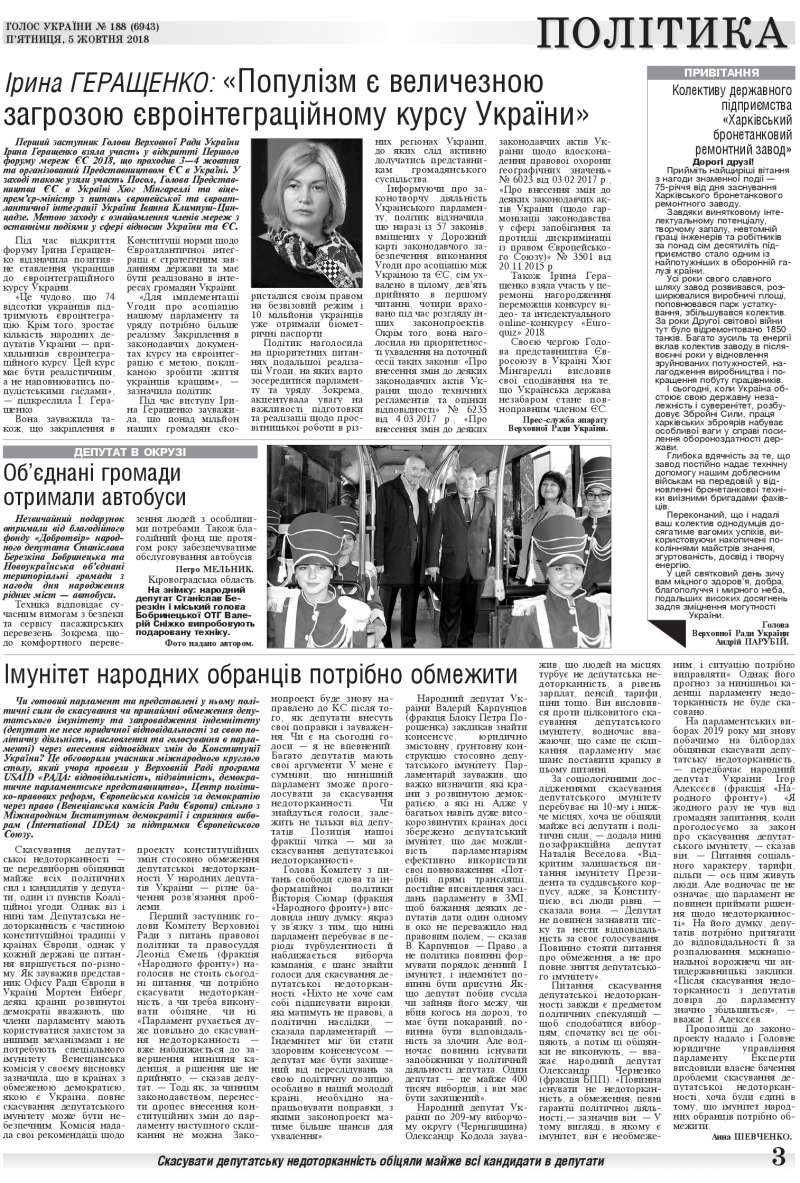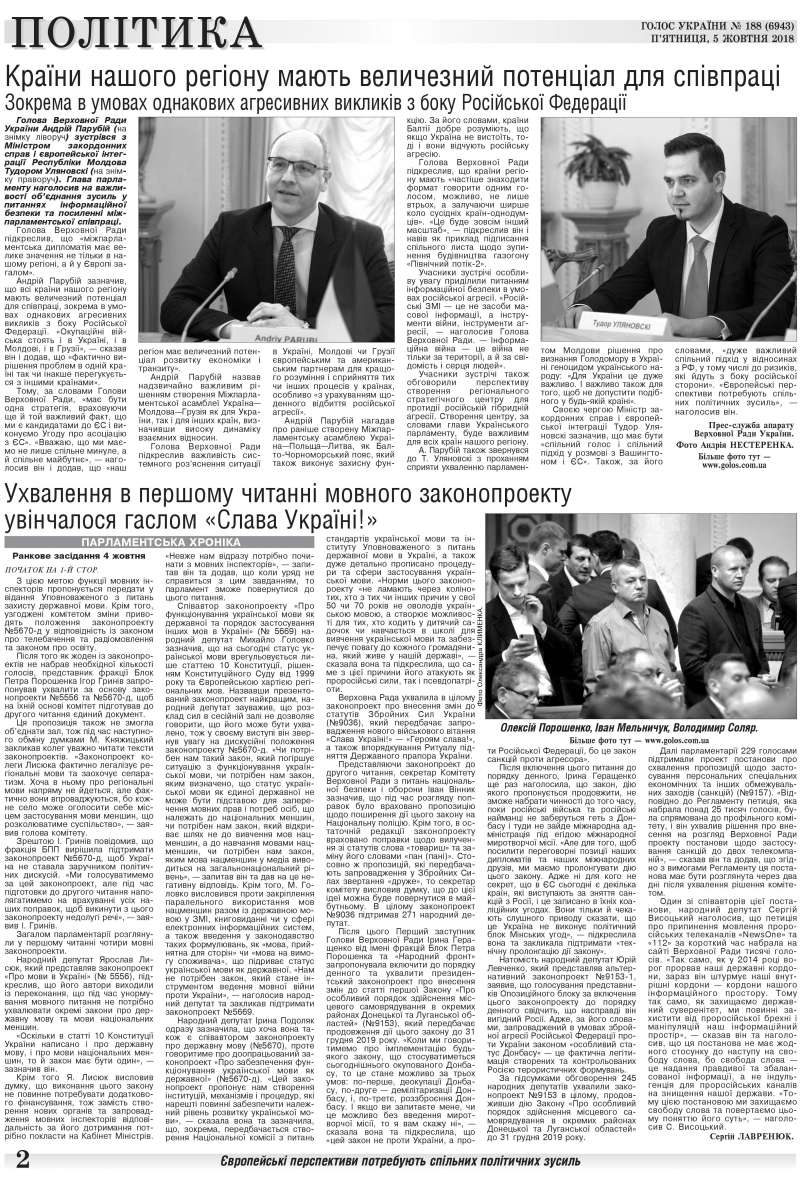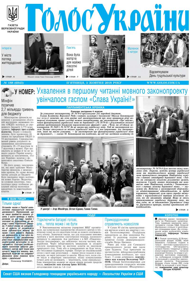 Повний випуск «Голосу України» від 05.10.2018 на сайті http://www.golos.com.ua