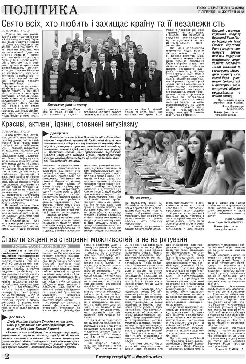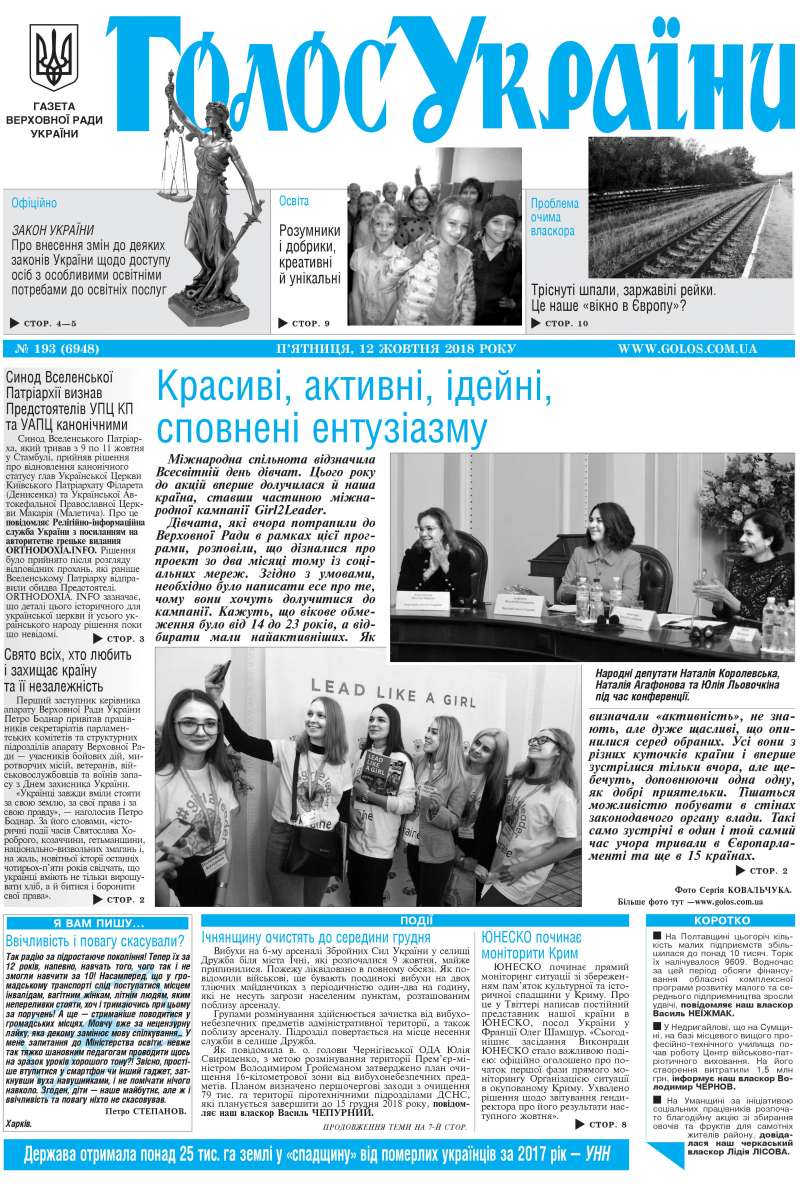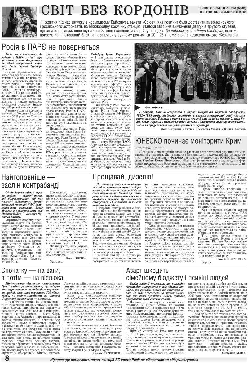 Повний випуск «Голосу України» від 12.10.2018 на сайті http://www.golos.com.ua