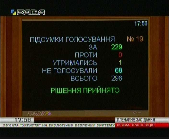 Законопроект прийнято в цілому 229 голосами.
