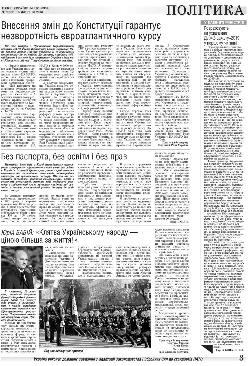Повний випуск «Голосу України» від 18.10.2018 на сайті http://www.golos.com.ua