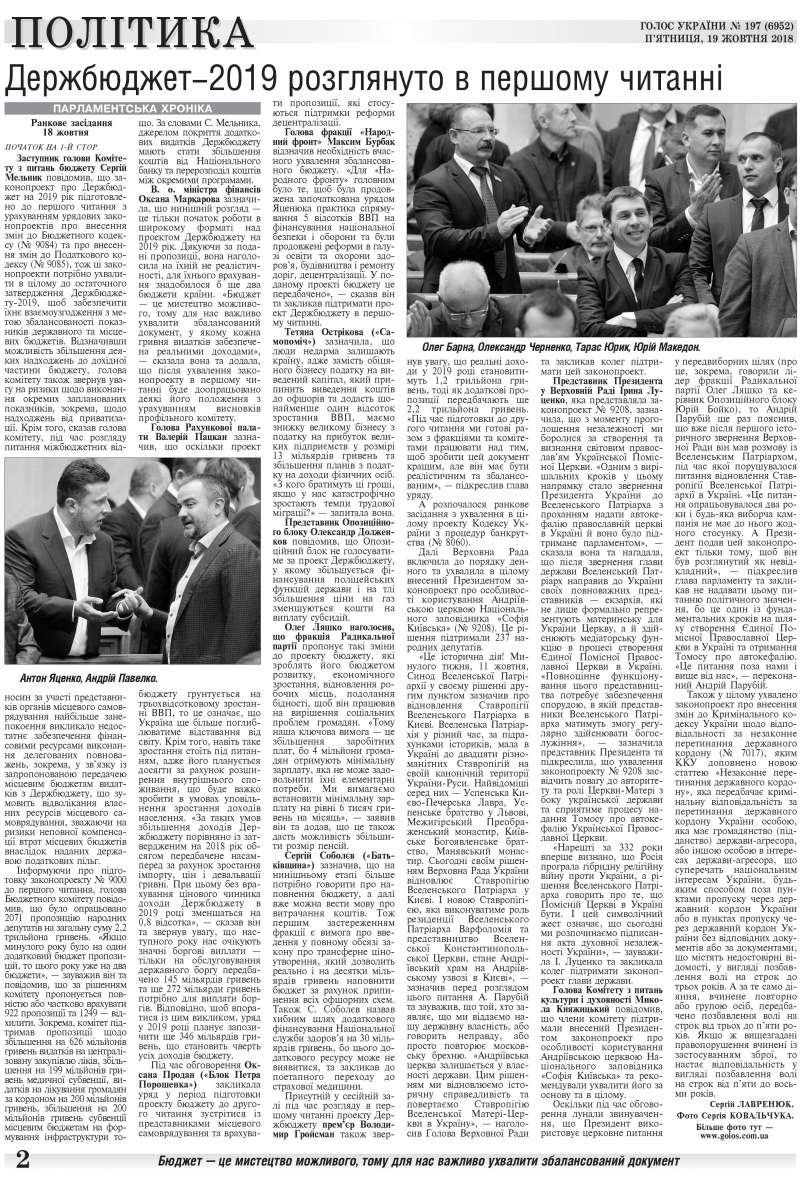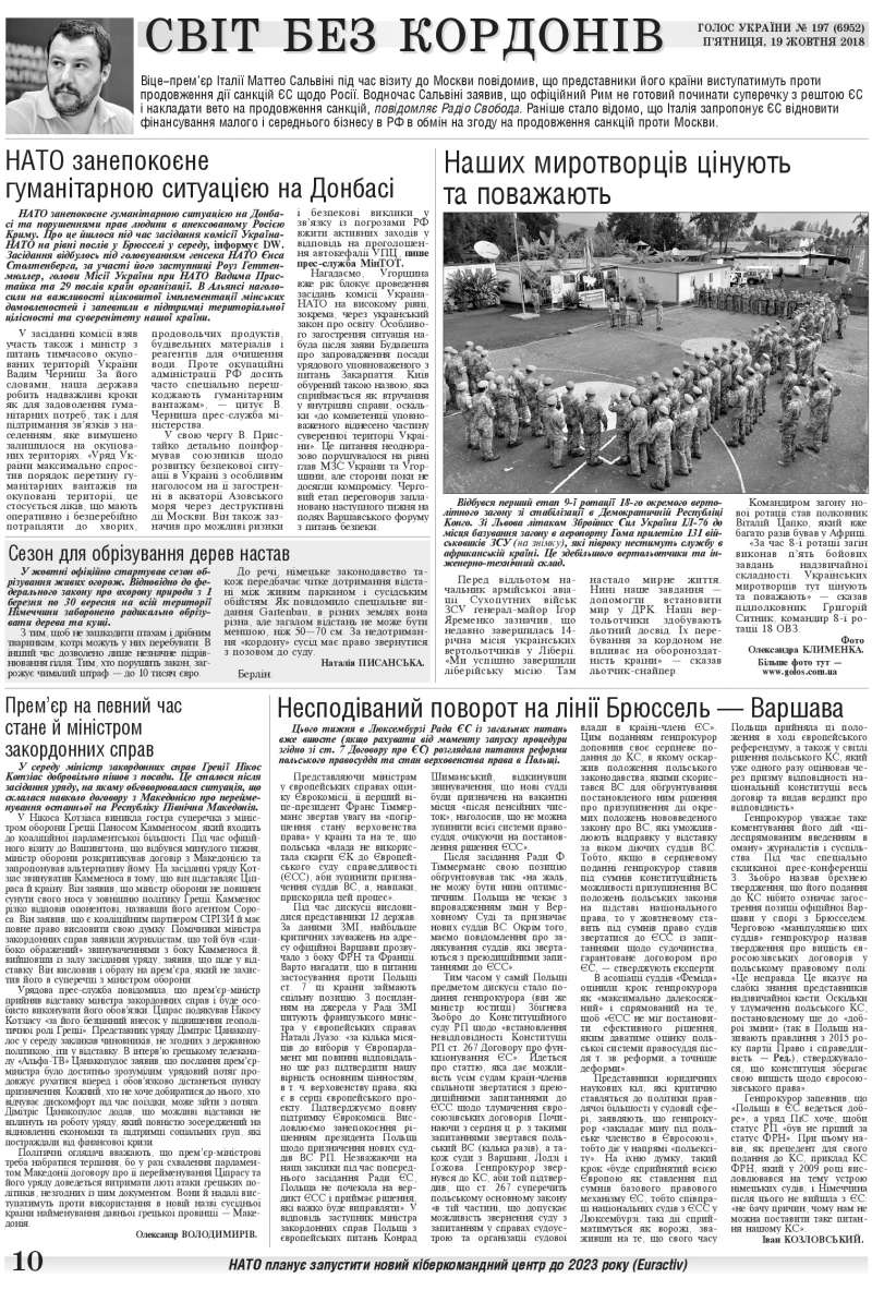 Повний випуск «Голосу України» від 19.10.2018 на сайті http://www.golos.com.ua