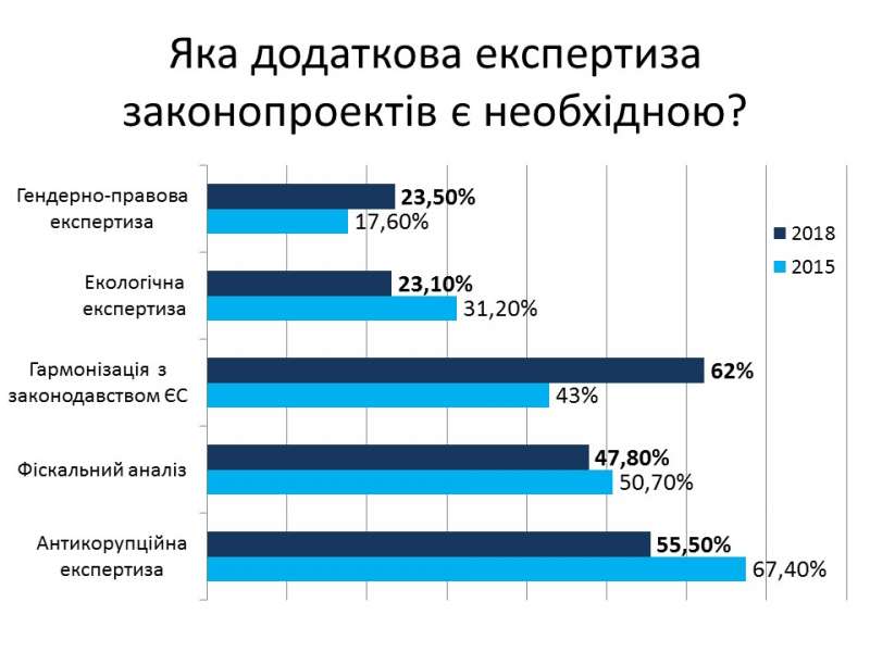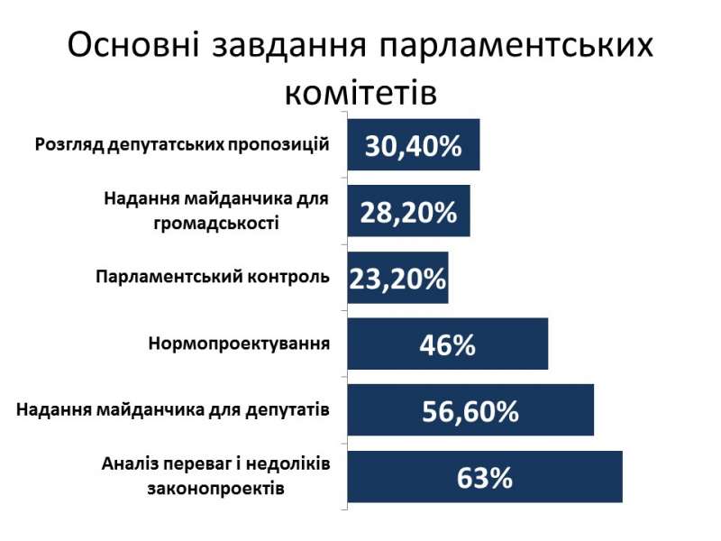 Як і у попередніх опитуваннях, основним завданням парламентських комітетів було визначено аналіз переваг та недоліків законопроектів. Також депутатами вказана необхідність поглиблення експертизи щодо гармонізації законодавства відповідно до стандартів ЄС.