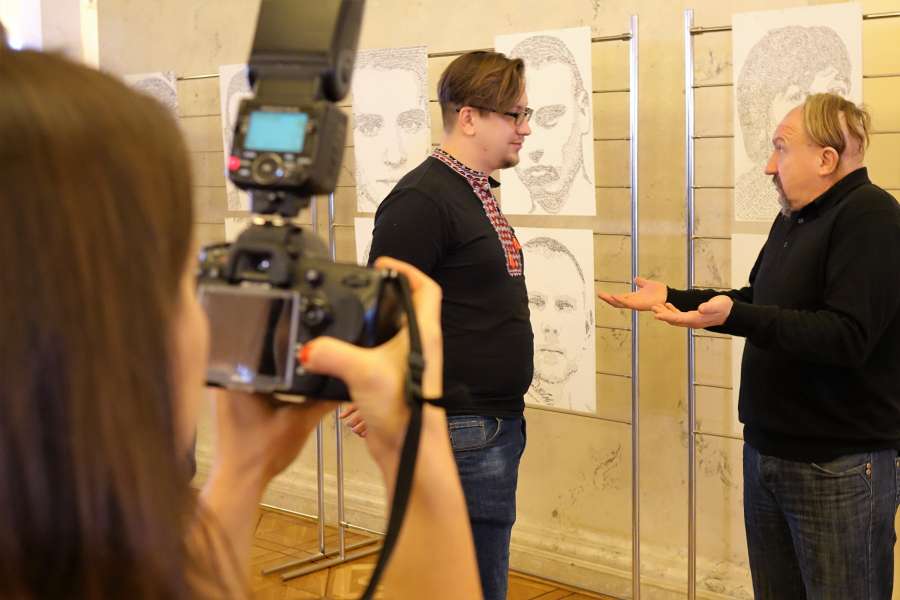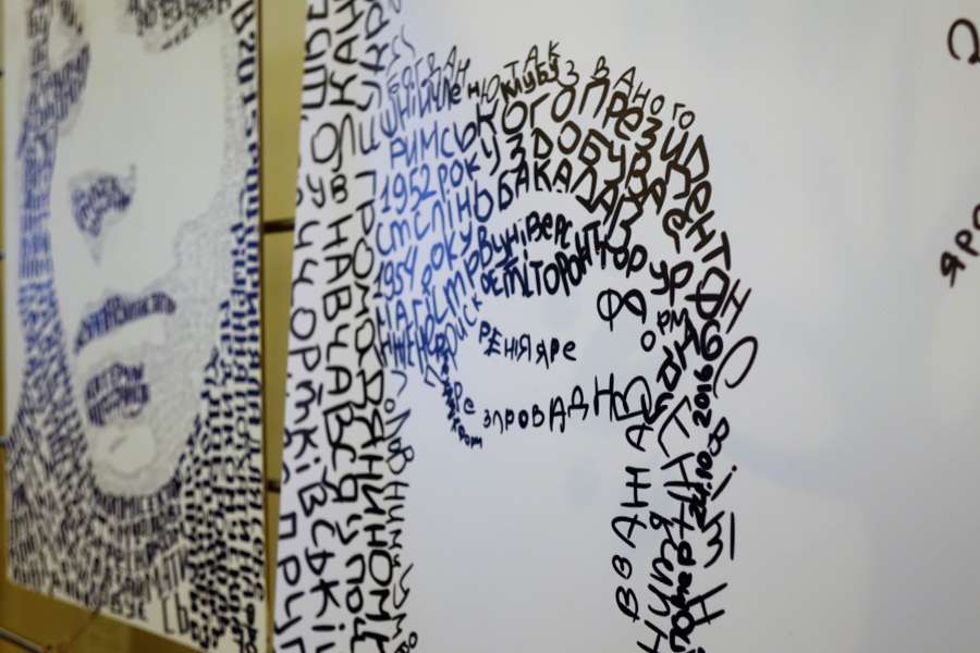 Виставка «І живим, і мертвим, і ненародженим» - це портрети, виконані у стилі каліграмма. Створив їх художник Тарас Степанушка на основі біографій бійців.