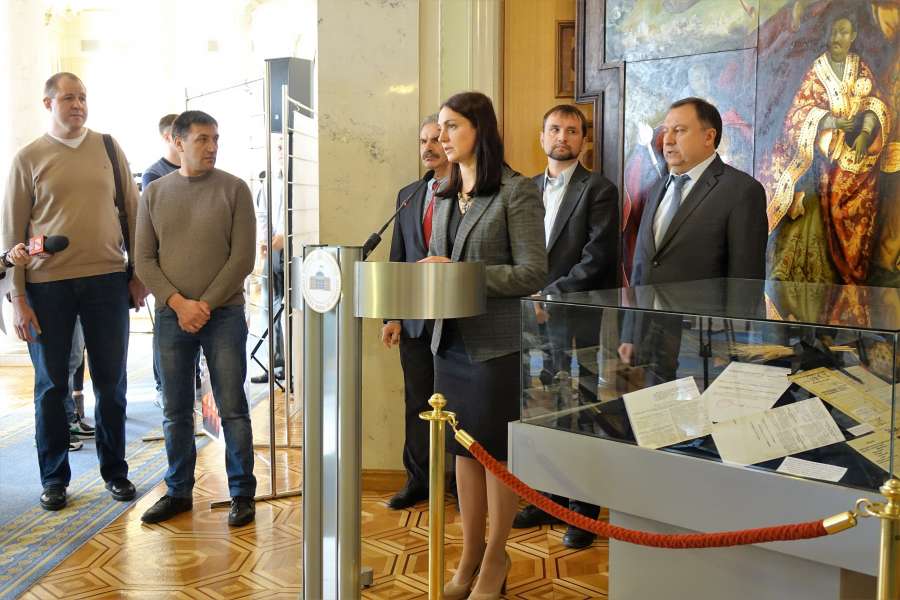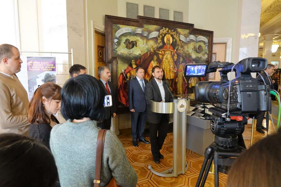 На відкритті експозиції з промовою виступили Голова Комітету з питань культури і духовності Микола Княжицький, Голова Комітету у закордонних справах Ганна Гопко,