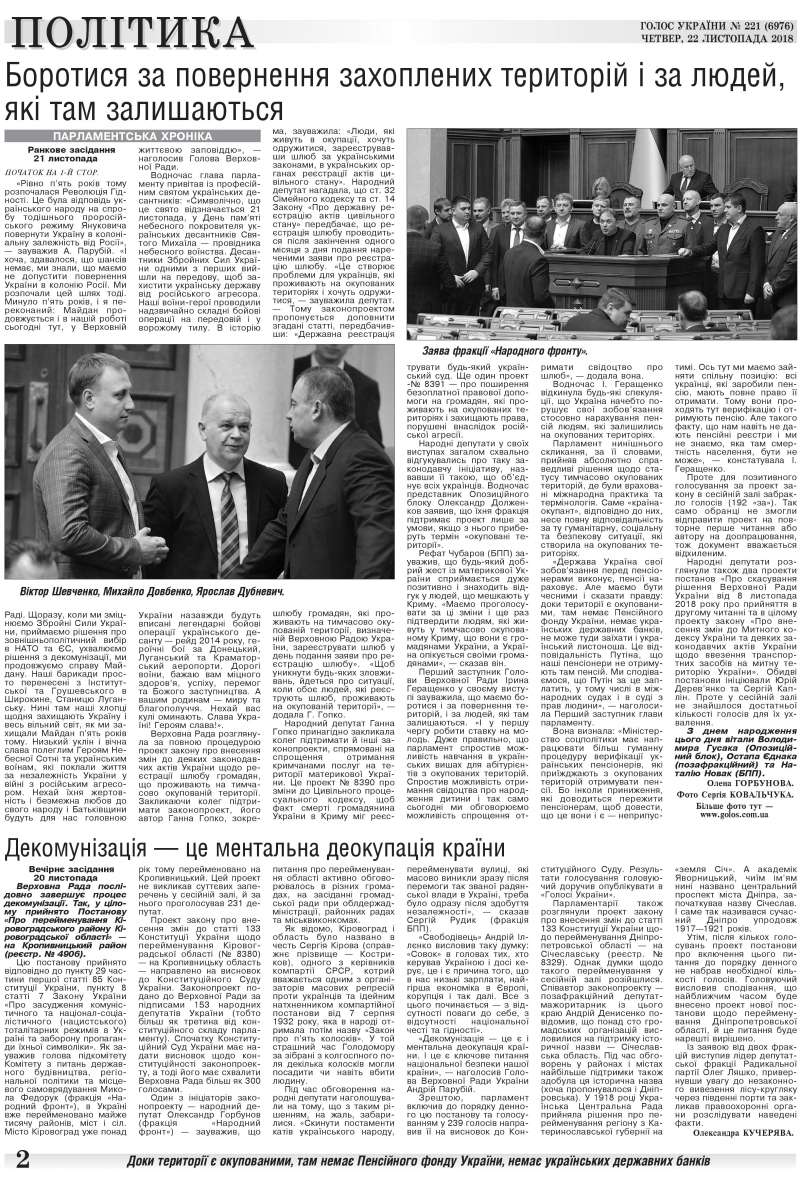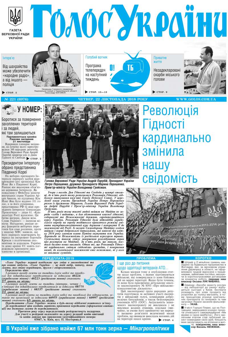 Повний випуск «Голосу України» від 22.11.2018 на сайті http://www.golos.com.ua
