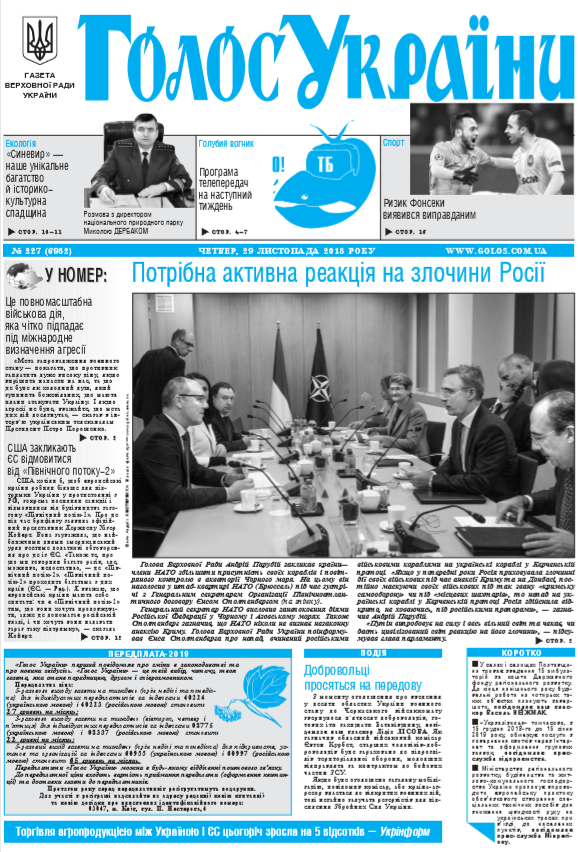 Повний випуск «Голосу України» від 29.11.2018 на сайті http://www.golos.com.ua