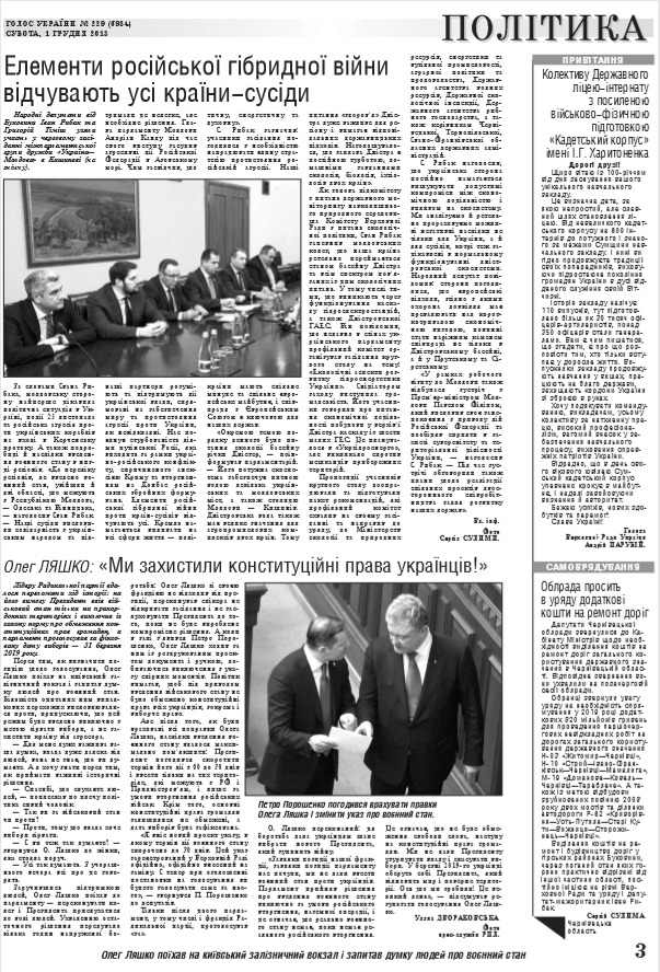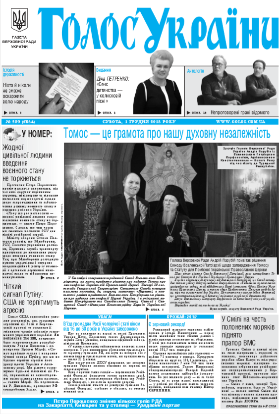 Повний випуск «Голосу України» від 01.12.2018 на сайті: http://www.golos.com.ua