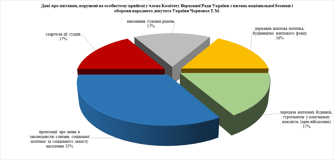 У своїх зверненнях до народного депутата відвідувачі порушували питання соціальної політики та соціального захисту населення, житлової політики, забезпечення дотримання законності та охорони правопорядку, реалізації прав і свобод громадян, запобігання дискримінації.