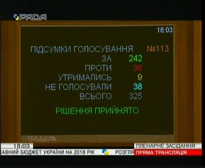 За результатами голосування законопроект прийнято в цілому 228 голосами.