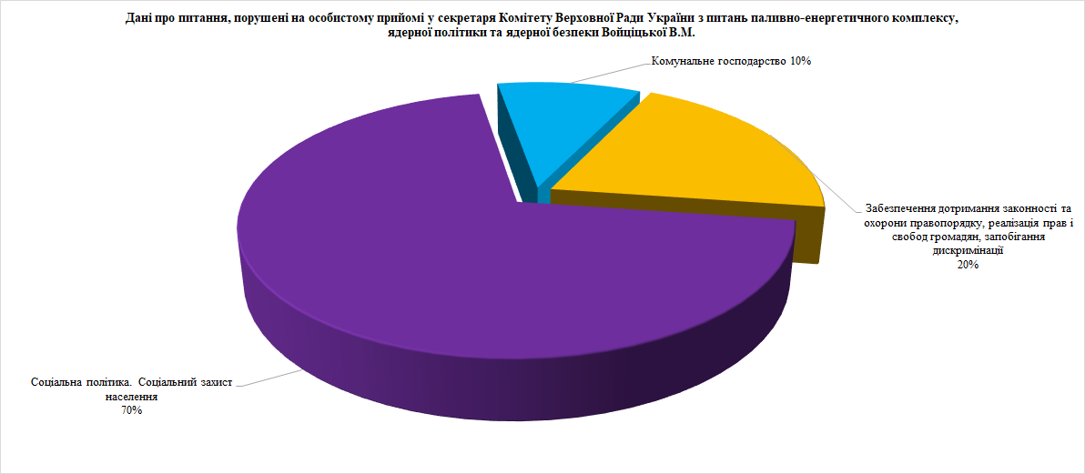 У своїх зверненнях до народного депутата відвідувачі порушували питання соціальної політики та соціального захисту населення, забезпечення дотримання законності та охорони правопорядку, реалізації прав і свобод громадян, запобігання дискримінації, комунального господарства.