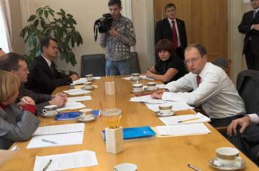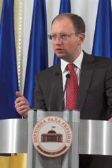 Він наголосив, що для цього не потрібно приймати жодних законодавчих актів. «Ми можемо справитися виключно силами Кабінету Міністрів України», - підкреслив А.Яценюк, зазначивши що за Конституцією України саме Кабінет Міністрів України відповідальний за економічну політику, а Національний банк України - за грошову політику, «але в рамках тієї економічної політики, яка вирішується Кабінетом Міністрів України».