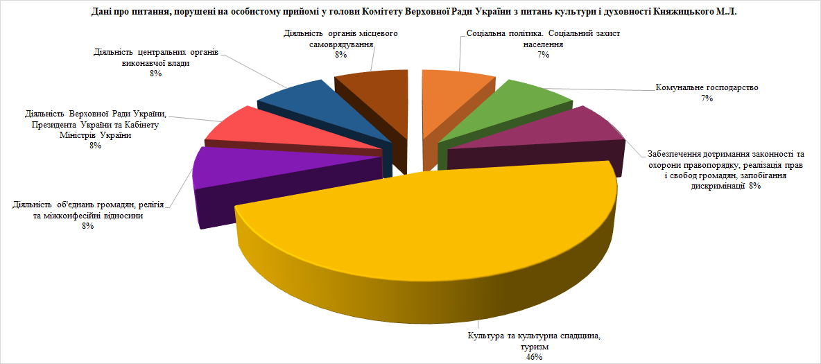 Під час особистого прийому відвідувачі порушили 13 питань. Серед них переважали питання культури та культурної спадщини, туризму, діяльності об’єднань громадян, релігії та міжконфесійних відносин.