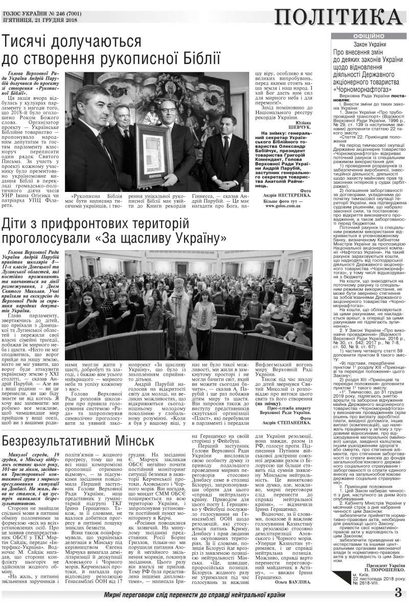 Повний випуск «Голосу України» від 21.12.2018 на сайті http://www.golos.com.ua