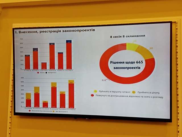 Так, згідно з даними, наведеними у Зеленій книзі, у період роботи 8-го скликання Верховної Ради (станом на 15 серпня 2018 року) було внесено 6659 законопроектів, з яких ухвалено лише 808, або 12,13%.