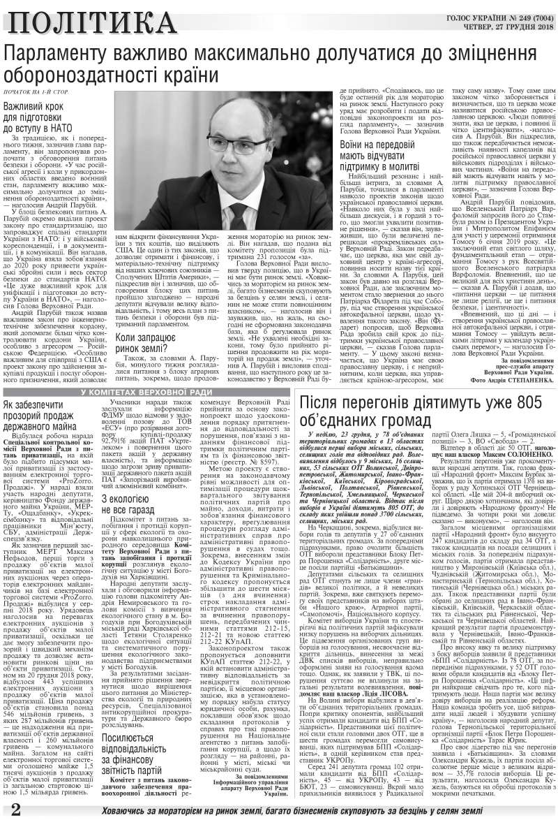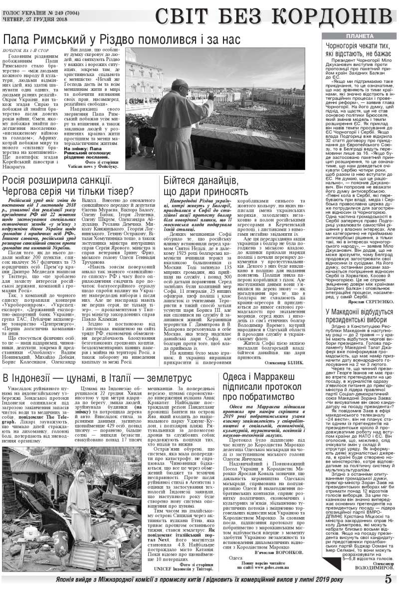 Повний випуск «Голосу України» від 27.12.2018 на сайті http://www.golos.com.ua