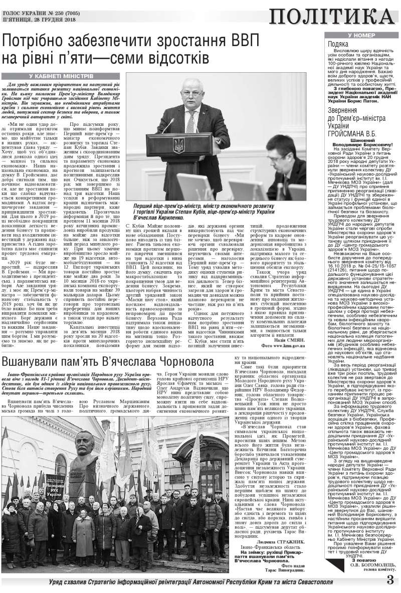 Повний випуск «Голосу України» від 28.12.2018 на сайті http://www.golos.com.ua