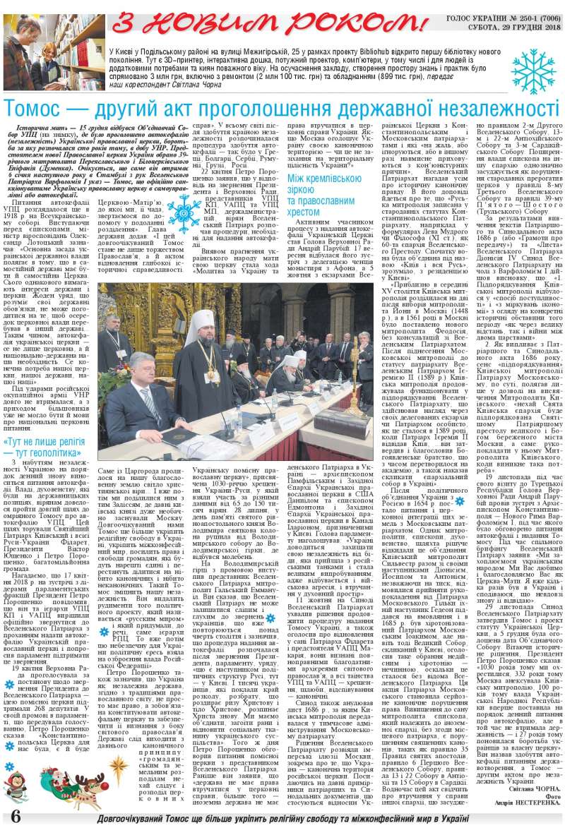 Повний випуск «Голосу України» від 29.12.2018 на сайті http://www.golos.com.ua