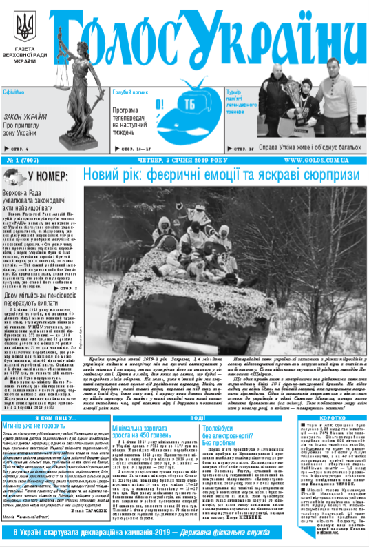 Повний випуск «Голосу України» від 03.01.2019 на сайті: http://www.golos.com.ua