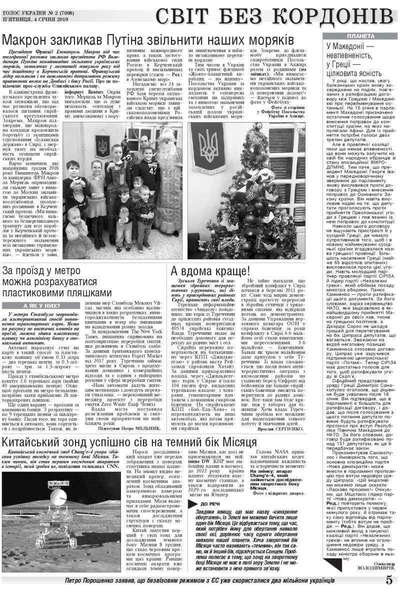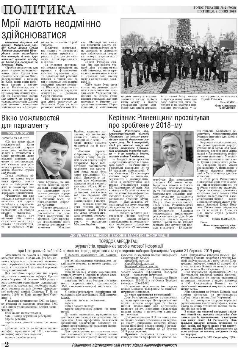 Повний випуск «Голосу України» від 04.01.2019 на сайті http://www.golos.com.ua
