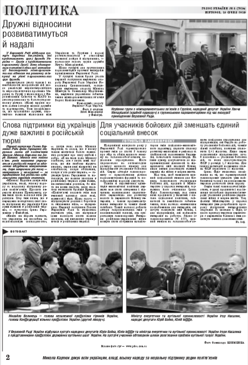 У Верховній Раді відбулася зустріч народних депутатів, які представляють групу дружби Україна — Грузія з представниками парламенту Грузії. Вони обговорювали питання подальшої активізації двосторонніх міжпарламентських відносин та розвитку співпраці на рівні парламентських груп дружби. (читайте у «Голосі України» на 2 стор. >>> article/312398)