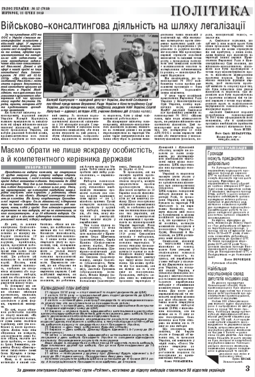 За час проведення АТО та ООС в Україні з’явилися високопрофесійні спеціалісти у військовій сфері. У мирному житті вони можуть застосувати свої специфічні навички та вміння, офіційно працевлаштуватися та матеріально себе забезпечити за умов законодавчого забезпечення військово-консалтингової діяльності. Донині в цій сфері в нашій країні не існує законодавчої бази. Законопроект № 8093 від 05.03. 2018р. «Про військово-консалтингову діяльність» може стати першим документом, який законодавчо врегулює цю діяльність в Україні. Необхідність та перспективи його ухвалення парламентом обговорювали під час круглого столу народні депутати України, юристи, ветерани АТО та представники громадських організацій. (читайте у «Голосі України» на 3 стор. >>> article/312664)
