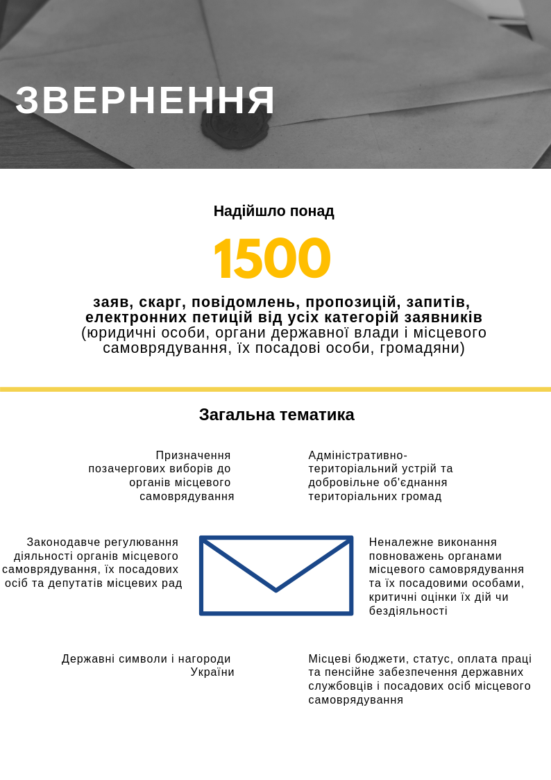 При розгляді звернень Комітет керувався положеннями Конституції України, Закону України «Про комітети Верховної Ради України», Постанови Верховної Ради України «Про перелік, кількісний склад і предмети відання комітетів Верховної Ради України восьмого скликання», законів України «Про звернення громадян», «Про доступ до публічної інформації», «Про інформацію». Звернення бралися до уваги, ретельно вивчалися, заявникам надавалися відповіді, роз’яснення, рекомендації, про зміст окремих звернень інформувалися уповноважені на їх розгляд органи державної влади та органи місцевого самоврядування.
